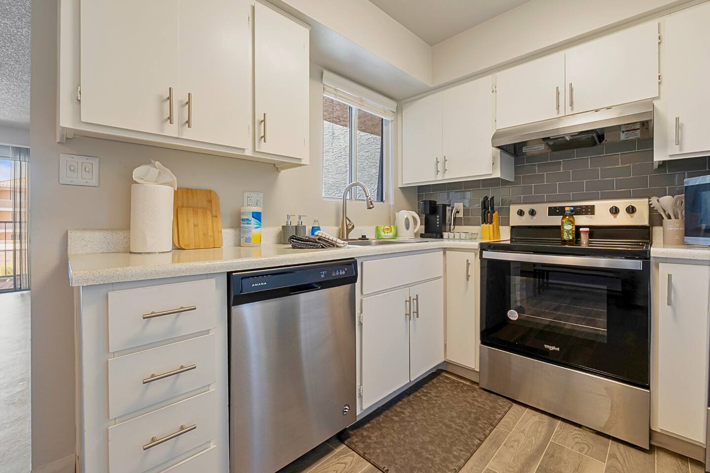 This fully furnished 1-bedroom, 1-bath apartment is designed for comfort and convenience, perfect for mid-term stays in Mesa. Located in a quiet, well-established community, the unit offers all the essentials for a hassle-free experience, whether you're a travel nurse, remote worker, or in town for an extended visit. WHAT YOU’LL LOVE: 📍 LOCATION You’ll be just 1 mile from Banner Desert Medical Center & Cardon Children’s Hospital — perfect for travel nurses or visiting families --Banner Desert Medical Center – 1 mile -- Cardon Children’s Hospital – 1 mile -- Mesa Community College – 1 mile -- Tempe/Arizona State University – 4 miles -- Sloan Park (Spring Training – Chicago Cubs) – 4 miles -- Hohokam Stadium (Spring Training – Oakland A’s) – 5 miles -- Downtown Mesa – 3 miles -- Downtown Tempe – 6 miles -- Phoenix Sky Harbor Airport – 10 miles 🏝️ BUILDING AMENITIES - Access to the community pool, fitness center, and BBQ area during your stay - You’ll have free parking right on-site - You have access to laundry (paid) on site 📺THE SPACE - You’ll have a clean, cozy living space with a Smart TV for streaming and a fold-out futon for extra sleeping space - You’ll sleep well in a queen-size memory foam bed - Have a space to get work done at your dedicated desk 🍳THE KITCHEN - You can whip up meals in the fully equipped kitchen with oven, stove, microwave, fridge, kettle, K-Cup coffee maker, coffees, teas, etc 🚽BATHROOM - The bathroom is stocked with starter toiletries (shampoo, conditioner, body wash) 🙋♀️HOST - I'm a superhost who makes sure your stay is great. I respond fast to all questions. PETS - This is a PET friendly unit. Those with pet allergies should avoid. I have other units that are NOT pet-friendly on my profile. 🤔QUESTIONS? Still have questions before booking? Send me a message.