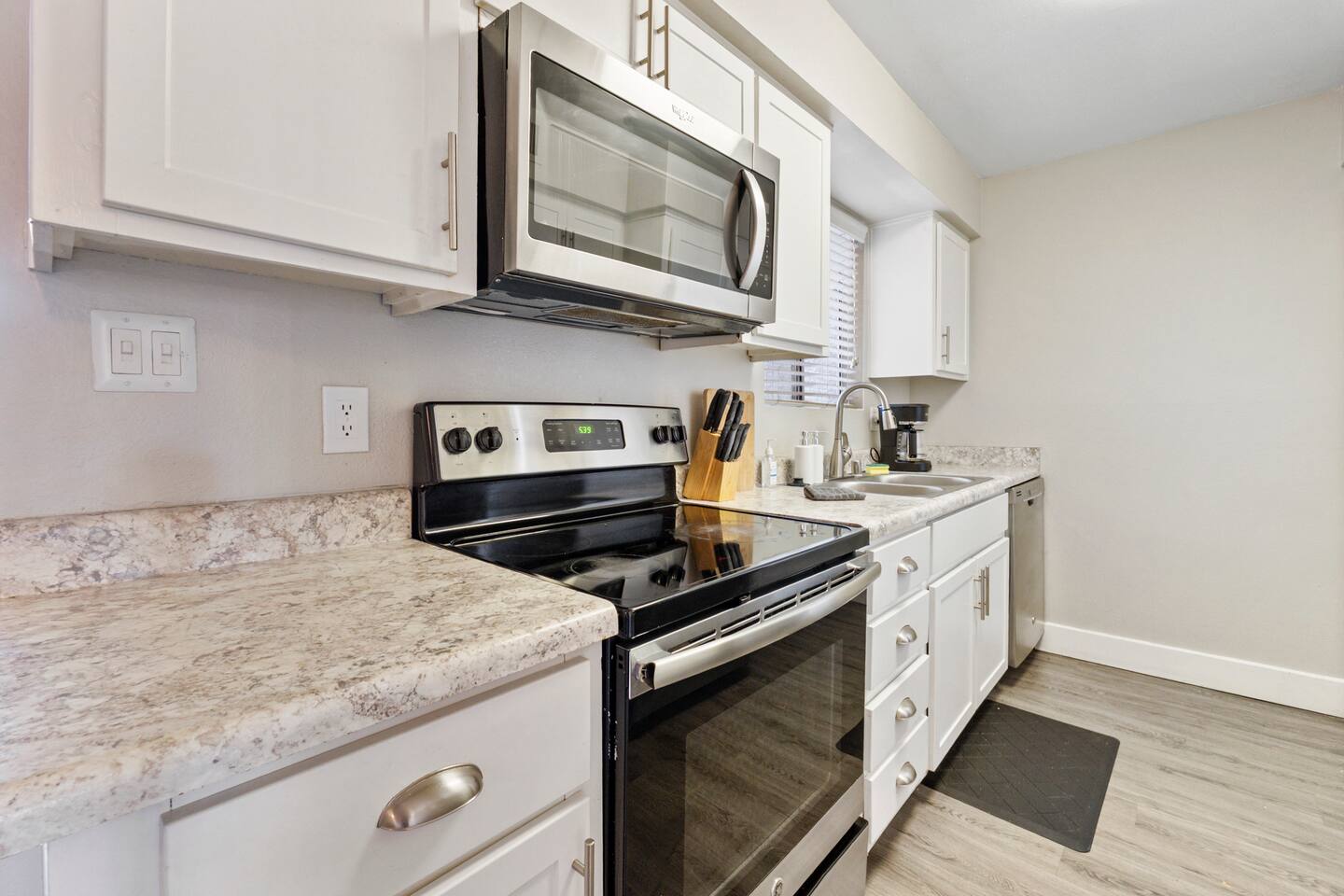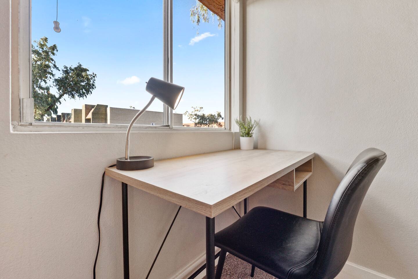 The apartment is located in a quiet, established part of Mesa with convenient access to major roads like US-60 and Loop 101, making it easy to get to Tempe, Chandler, Scottsdale, and Downtown Phoenix. The area is ideal for travel professionals, especially those working at nearby medical centers like Banner Desert Medical Center, Cardon Children’s Hospital, and Arizona Spine & Joint Hospital — all just minutes away. It’s also close to Mesa Community College and Arizona State University in Tempe. Baseball fans will love being near Hohokam Stadium, home of the Oakland A’s Spring Training, and other Cactus League venues. For shopping and entertainment, both Mesa Riverview and Tempe Marketplace are nearby, offering dining, grocery, and retail options. The neighborhood is calm and residential, making it great for restful stays while still being close to everything you need — whether you’re here for work, school, or leisure.