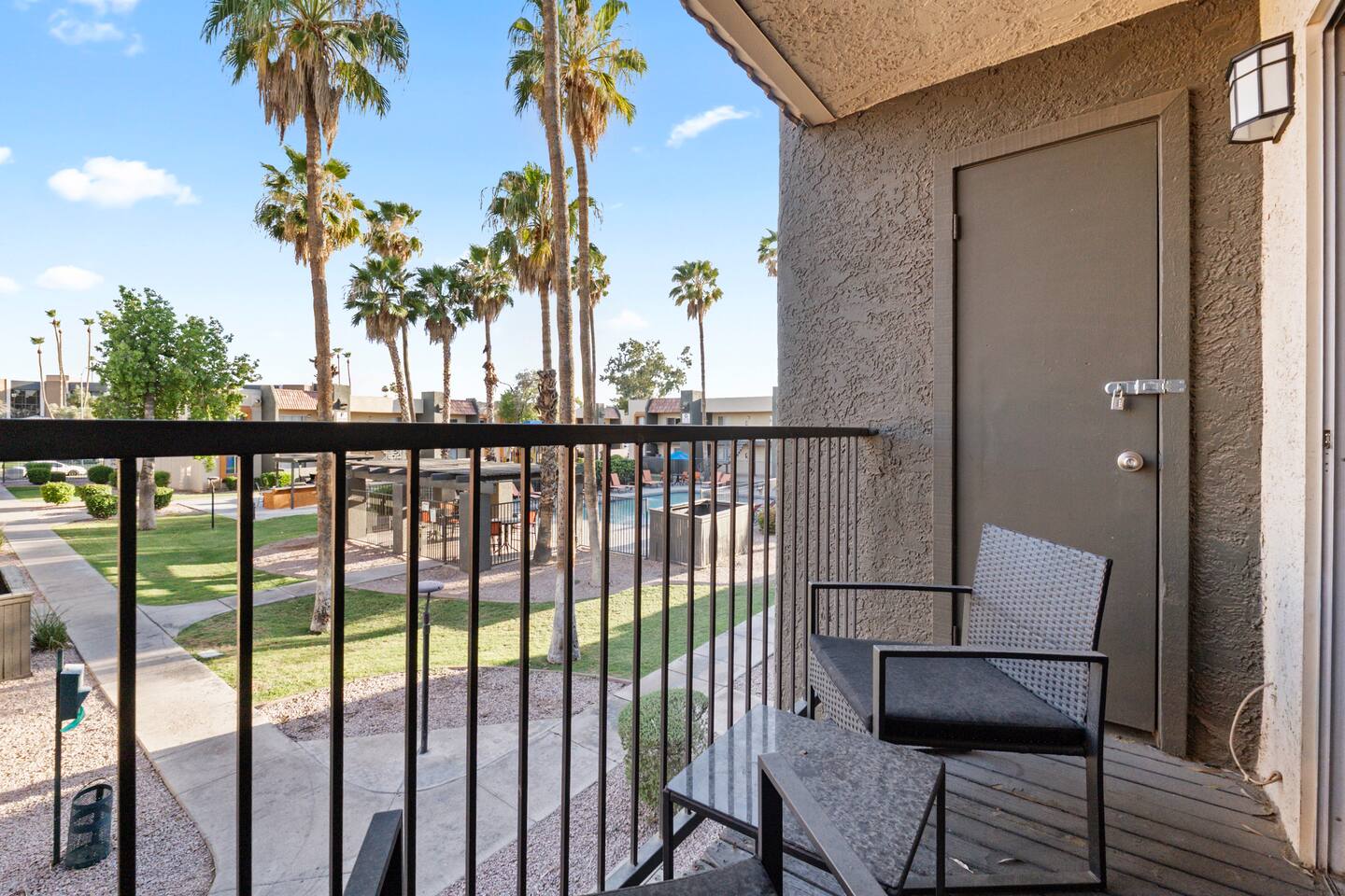 Thanks for considering booking with me! I welcome mid/long term stays! Enjoy a comfortable 2BR just minutes from Downtown Mesa. - Fast WiFi -Fully Equipped kitchen -50" smart TV -Free parking -Pool -Gym -Laundry PLEASE NOTE: this is an 2nd floor apartment in an older building that has renovated units. Not luxury apartments. Perfect for someone looking for a no-frills comfortable stay that meets all their needs. Send me a message if you have any additional questions!
