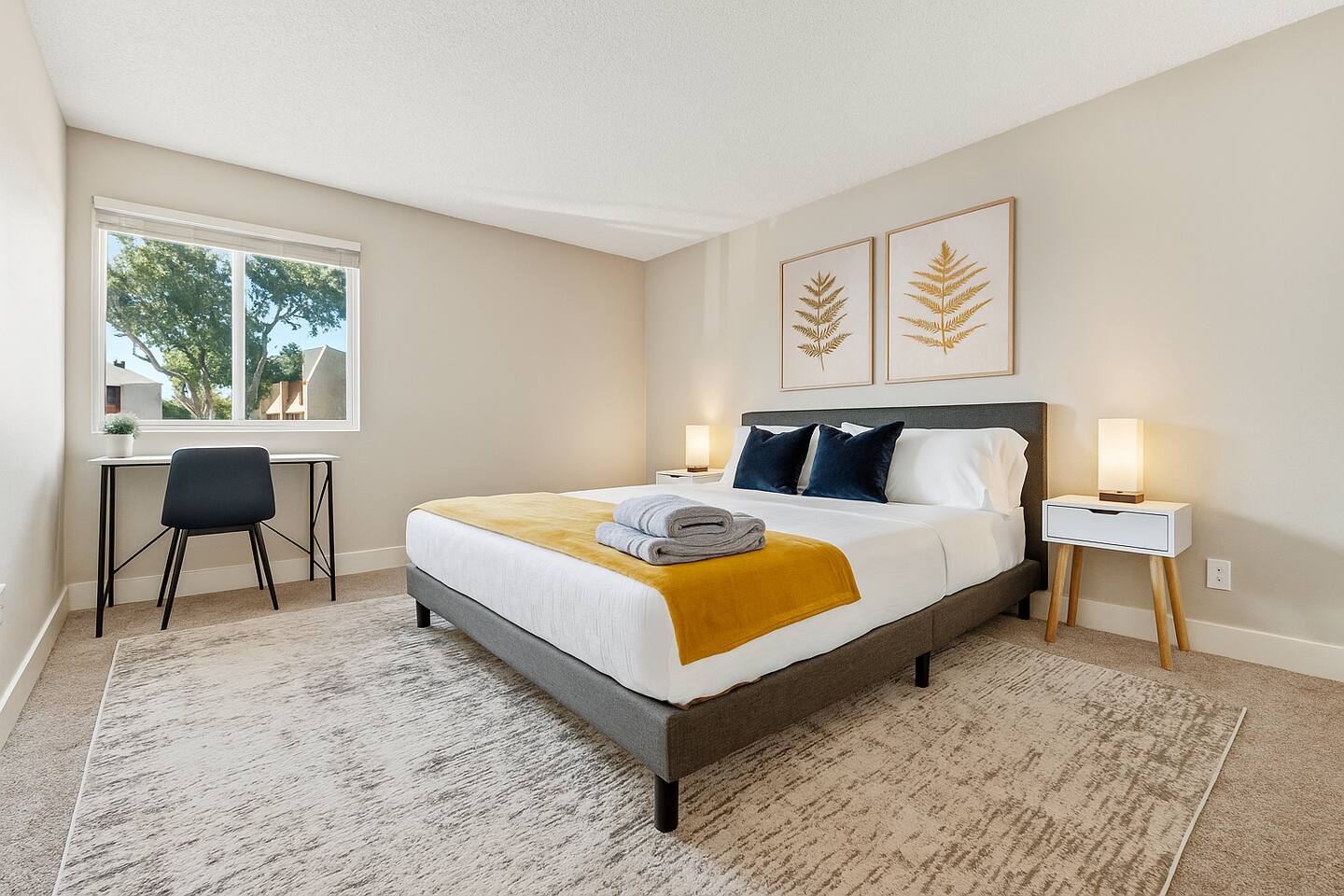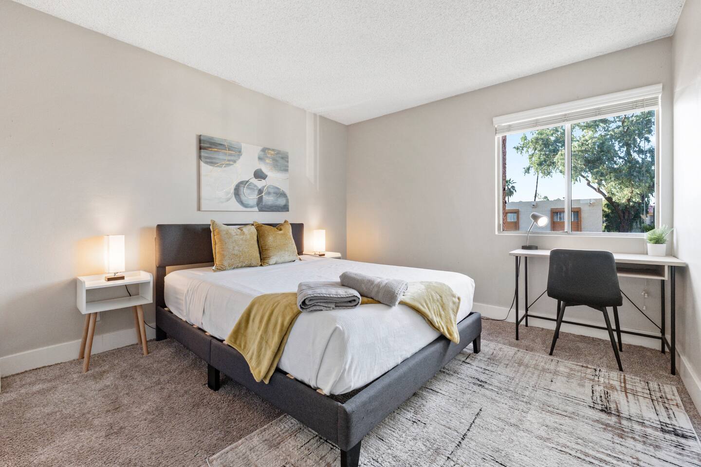 This fully furnished 2-bedroom, 1-bath apartment is designed for comfort and convenience, perfect for mid-term stays in Mesa. Located in a quiet, well-established community, the unit offers all the essentials for a hassle-free experience, whether you're a travel nurse, remote worker, or in town for an extended visit. WHAT YOU’LL LOVE: LOCATION You’ll be just 1 mile from Banner Desert Medical Center & Cardon Children’s Hospital — perfect for travel nurses or visiting families - - Banner Desert Medical Center – 1 mile -- Cardon Children’s Hospital – 1 mile -- Mesa Community College – 1 mile -- Tempe/Arizona State University – 4 miles -- Sloan Park (Spring Training – Chicago Cubs) – 4 miles -- Hohokam Stadium (Spring Training – Oakland A’s) – 5 miles -- Downtown Mesa – 3 miles -- Downtown Tempe – 6 miles -- Phoenix Sky Harbor Airport – 10 miles BUILDING AMENITIES - Access to the community pool, fitness center, and BBQ area during your stay - You’ll have free parking right on-site - You have access to laundry (paid) on site THE SPACE - You’ll have a clean, cozy living space with a Smart TV for streaming and a fold-out futon for extra sleeping space - You’ll sleep well in either the queen or king-size memory foam bed - Have a space to get work done at your dedicated desk THE KITCHEN - You can whip up meals in the fully equipped kitchen with oven, stove, microwave, fridge, kettle, K-Cup coffee maker, coffees, teas, etc BATHROOM - The bathroom is stocked with starter toiletries (shampoo, conditioner, body wash) HOST - I'm a superhost who makes sure your stay is great. I respond fast to all questions. PETS -This is a PET friendly unit. Those with pet allergies should avoid. I have other units that are NOT pet-friendly on my profile. QUESTIONS? Still have questions before booking? Send me a message.
